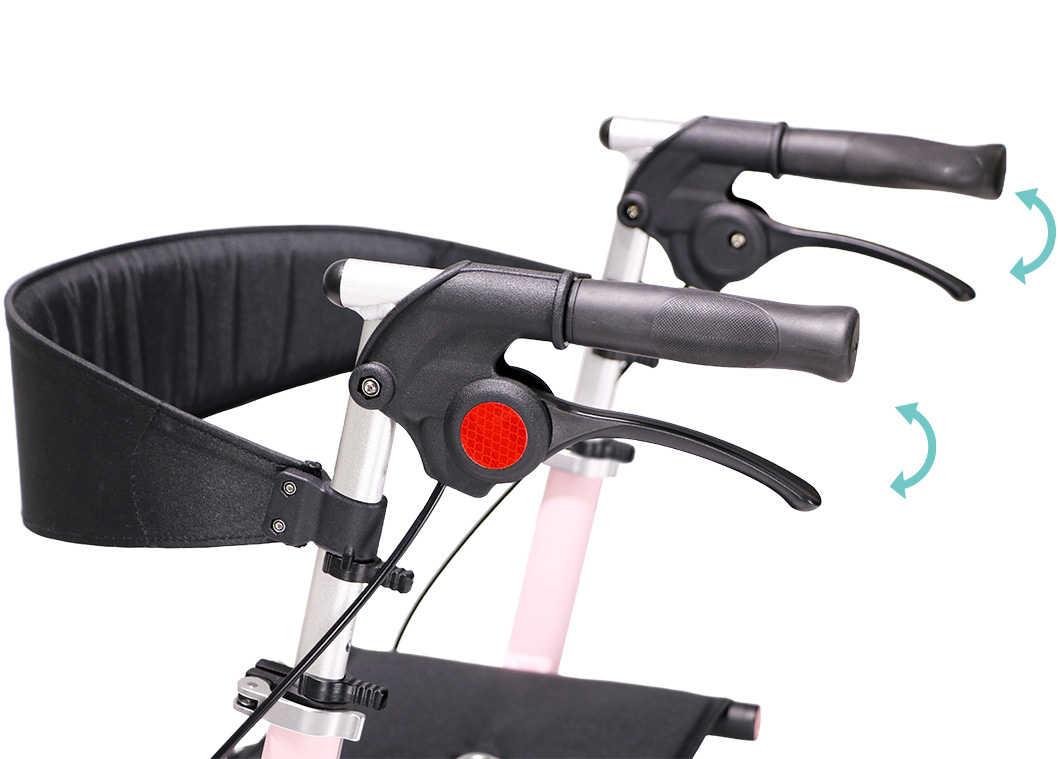 廣翰助行器人體工學剎車把手設計,操作順暢、剎車靈敏,不論是在平地或下坡都能輕鬆控制速度。長者可随時停步,安全随行,家人也能更加放心